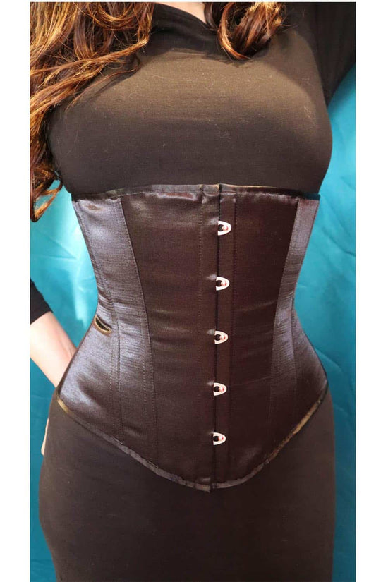 It’s about wearing a corset that’s patterned to guide your waistline and posture over time. The shape comes from the cut and structure of the corset, then your body learns that silhouette through consistency.