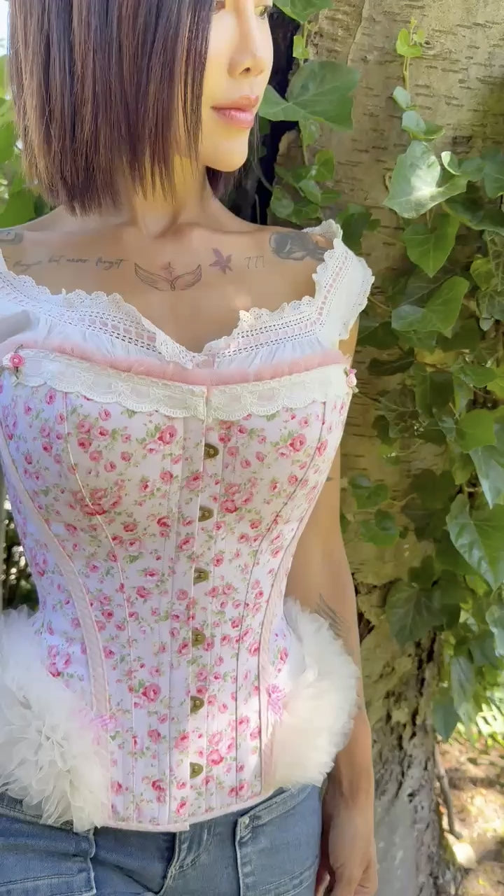 🌹 Scattered Pink Roses Corset