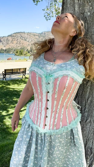 This corset is both sweet and structured—perfect for wandering through wildflower fields or lounging by candlelight. The boning is flexible for gentle shaping, making it a comfortable piece to wear as outerwear or layered beneath a vintage ensemble.