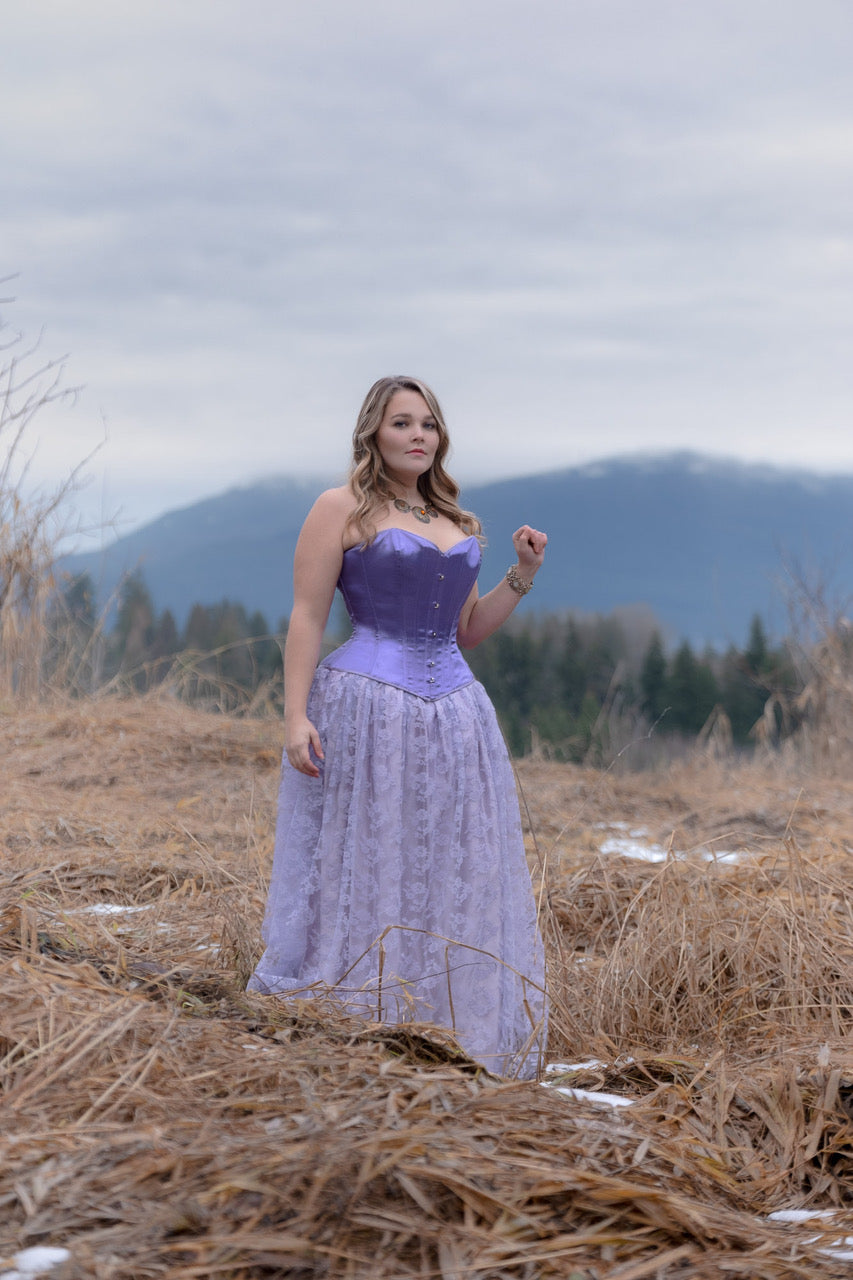 This corset is perfect for 5’-5’5” height and B-C cup sizes. If you would like your décolletage to be extra bountiful, consider adding a pair of cleavage enhancers.
