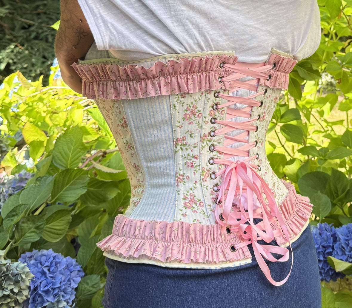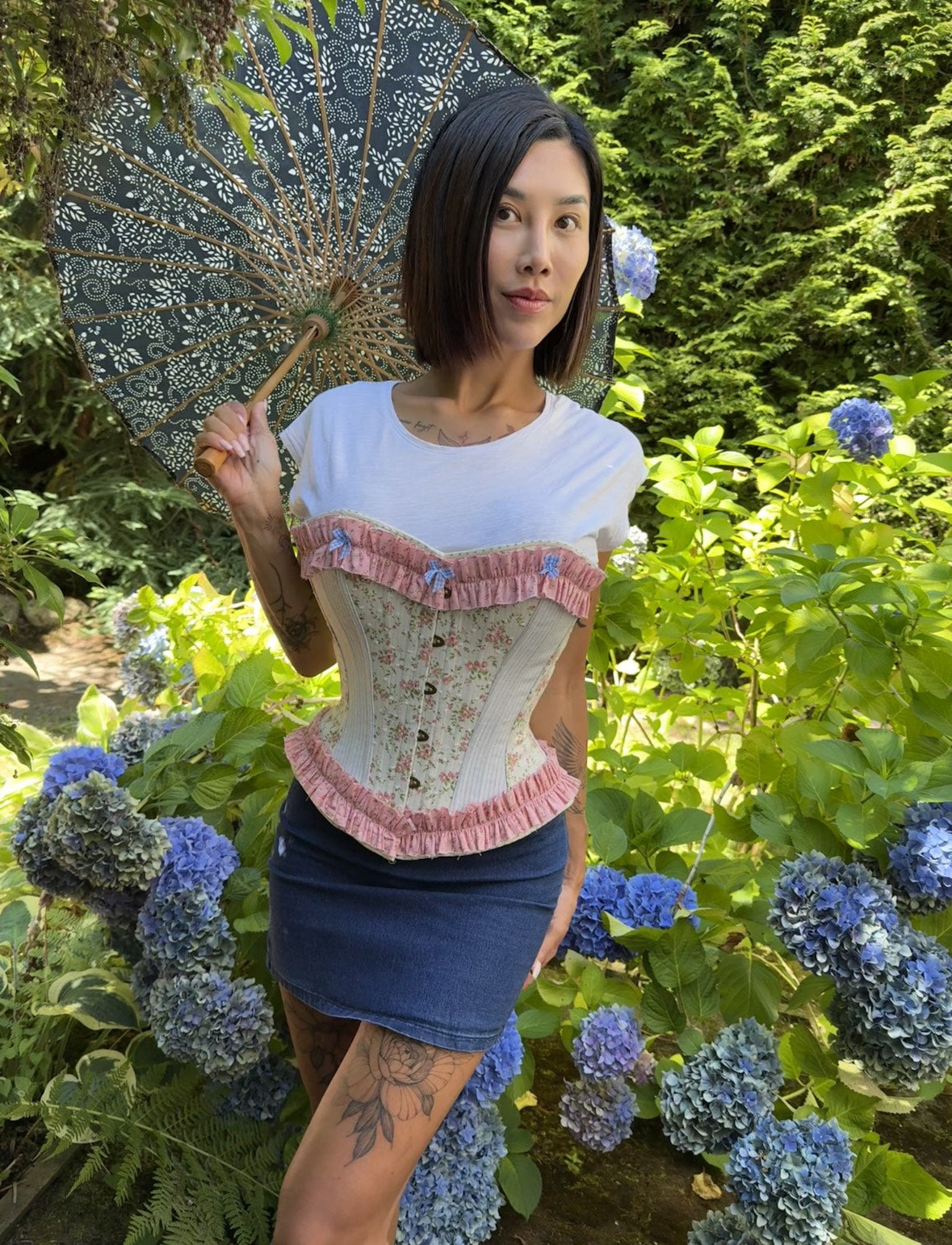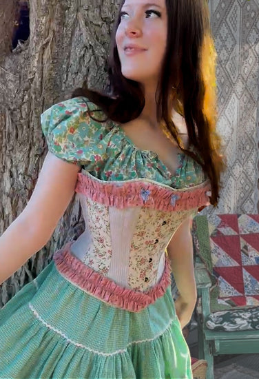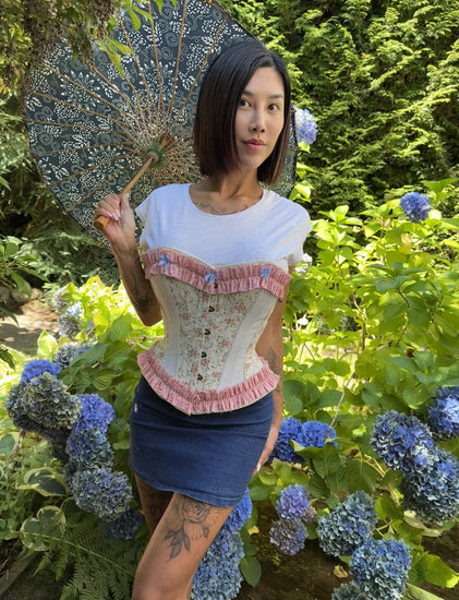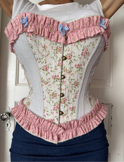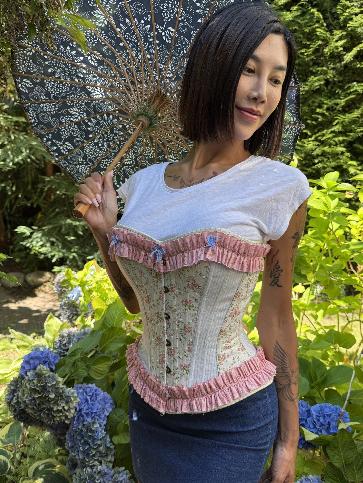 With its mix of florals, stripes, and bows, the Primrose and Pinstripes corset is part of our Little House on the Prairie capsule collection. Designed for the modern romantic who loves to flirt with nostalgia. Pair it with jeans for a playful look or layer it over a cotton petticoat for a historical moment.