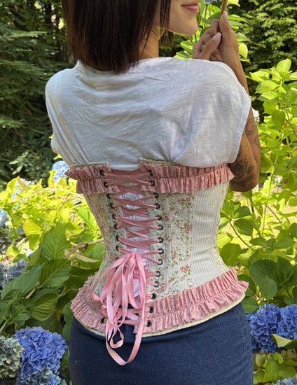 The Adora Corset is a beautifully structured Victorian mid-bust corset, bridging the transition between Victorian and Edwardian corsetry (c. 1900). Designed for graceful waist reduction and delicate bust support, the Adora sits at mid-bust height, just covering the nipple, with a pointed hipline for a sculpted, hourglass silhouette. Inspired by an original R&G historical corset, this style was one of the most sought-after designs of its time, offering a timeless blend of structure, comfort, and vintage elegance.
