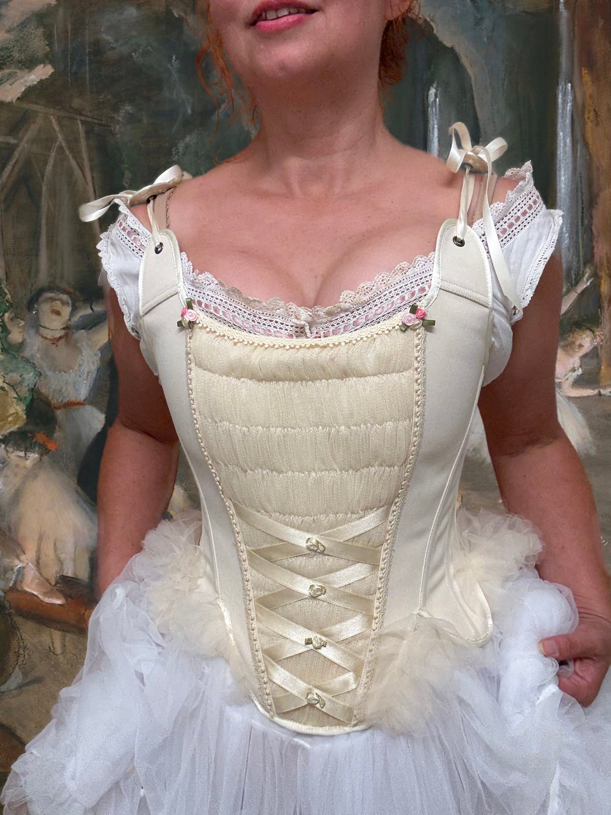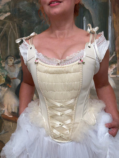 Like a breath of winter mist over a moonlit lake, this White Swan corset embodies purity, grace, and the tender poise of Odette herself.