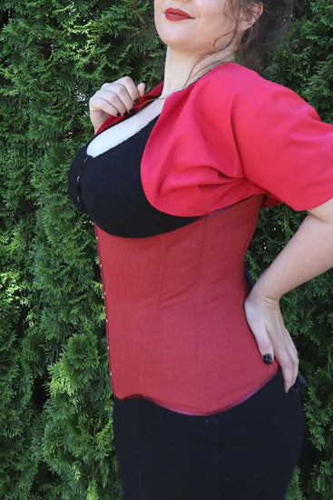 The Edwardian curves upward at the back, giving a smooth silhouette and offering excellent back support. Many years have gone into the refining of this pattern, with the busk length ranging from 11-14” depending on your chosen size. Shaped by 14 spring steel bones, this corset should last a lifetime if properly cared for.