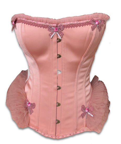 Tea Rose Satin Corset with Bows and Ruffle Hips